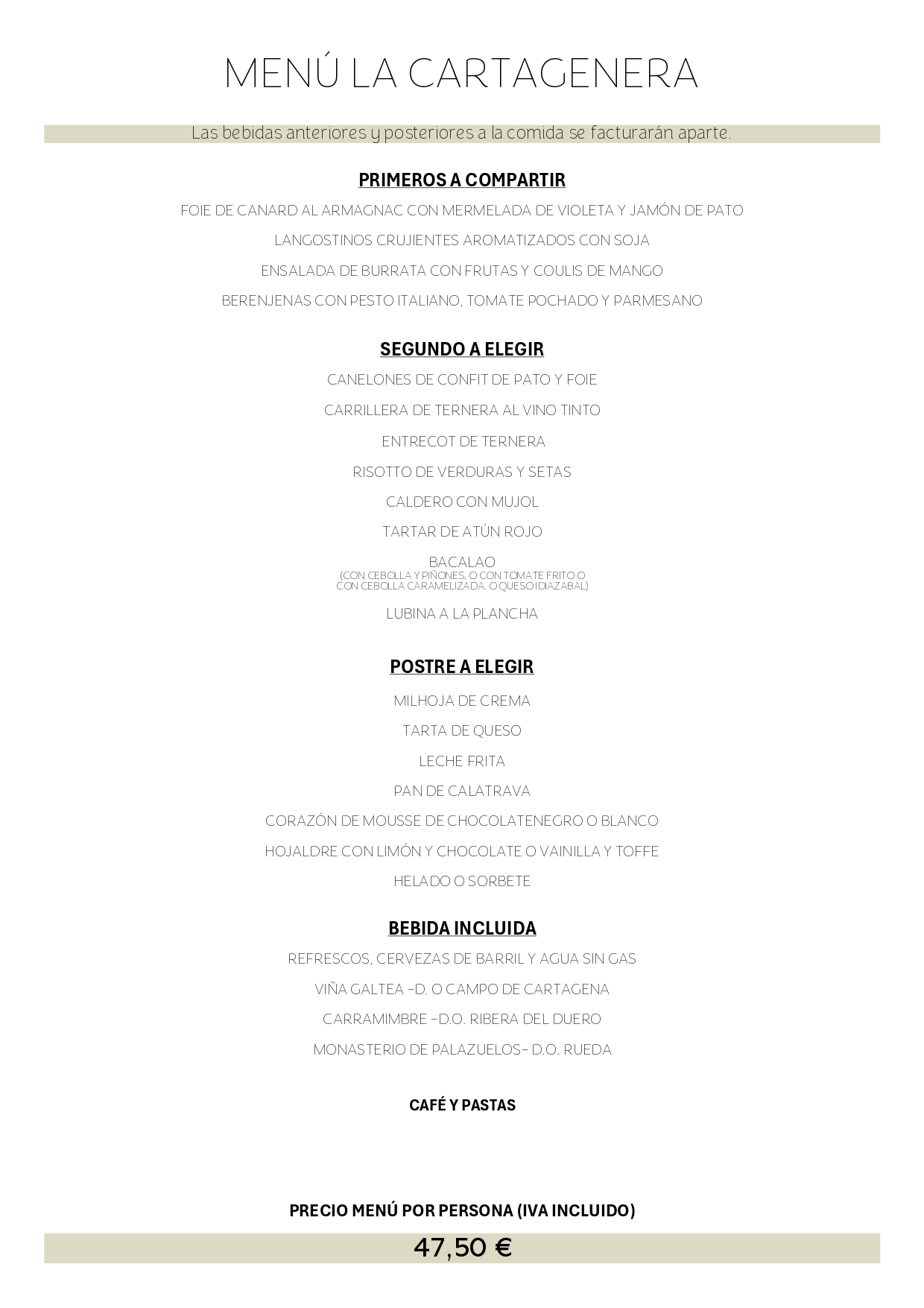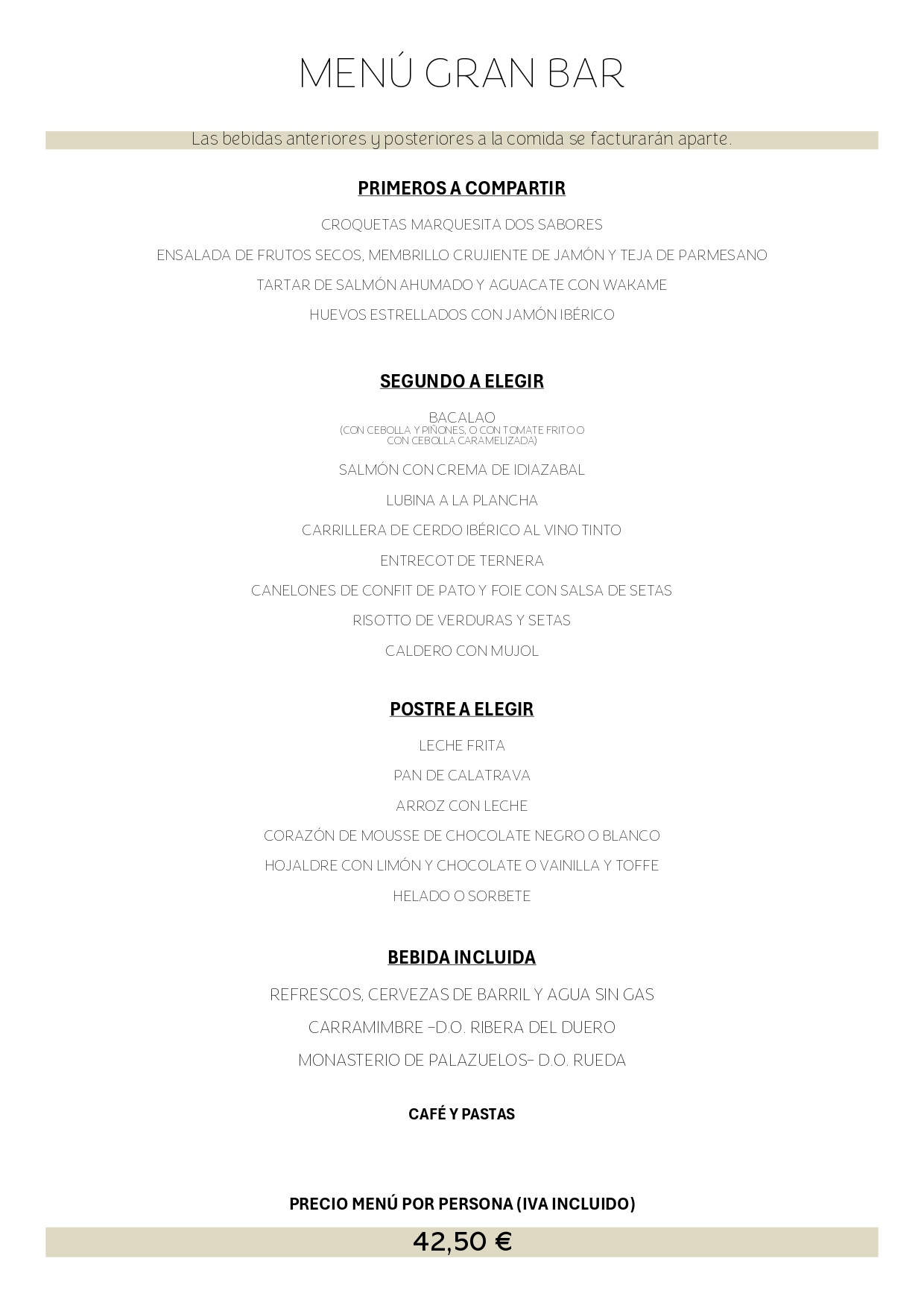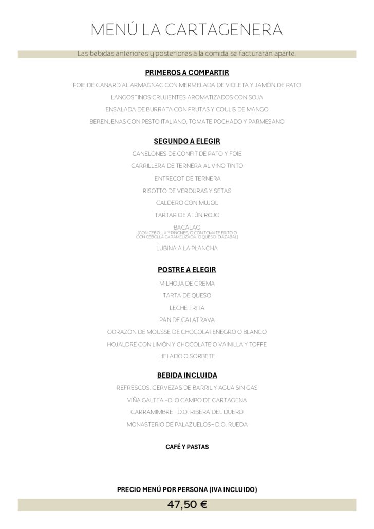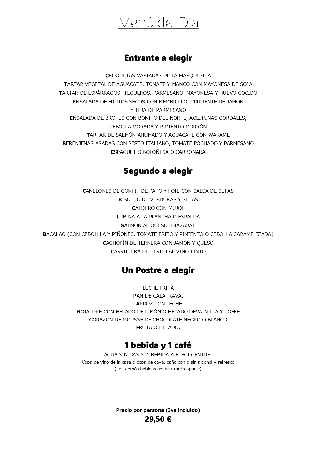 Menú PLAZA JOSÉ MARÍA ARTÉS 75,00€