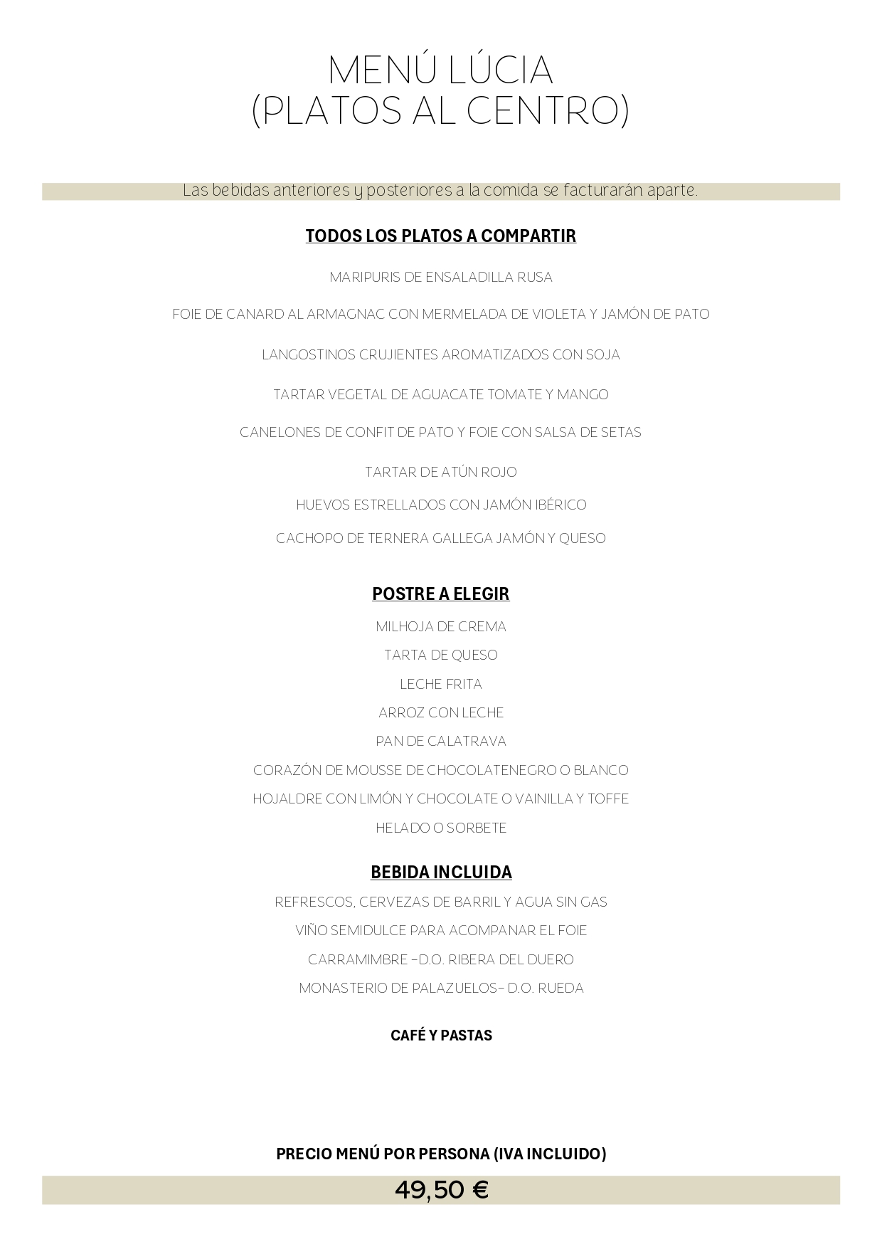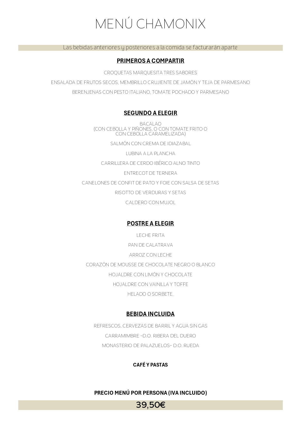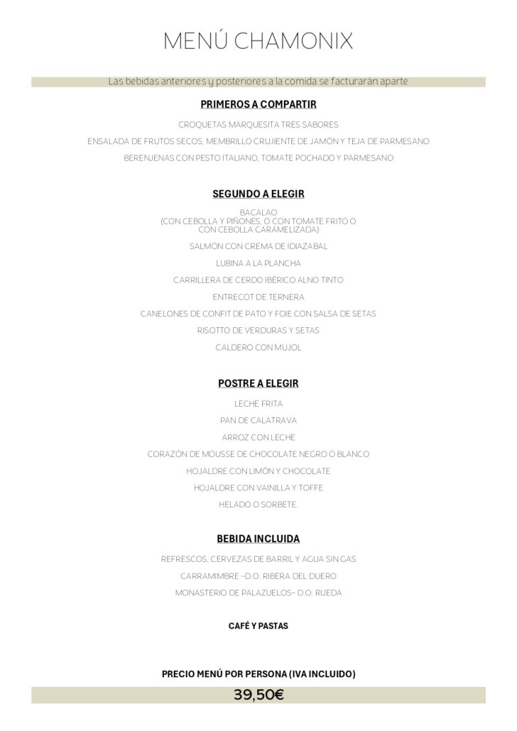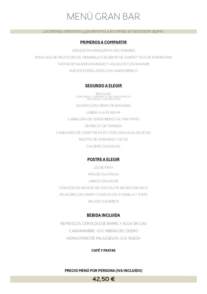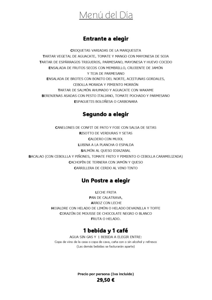 Menú PLAZA JOSÉ MARÍA ARTÉS 75,00€