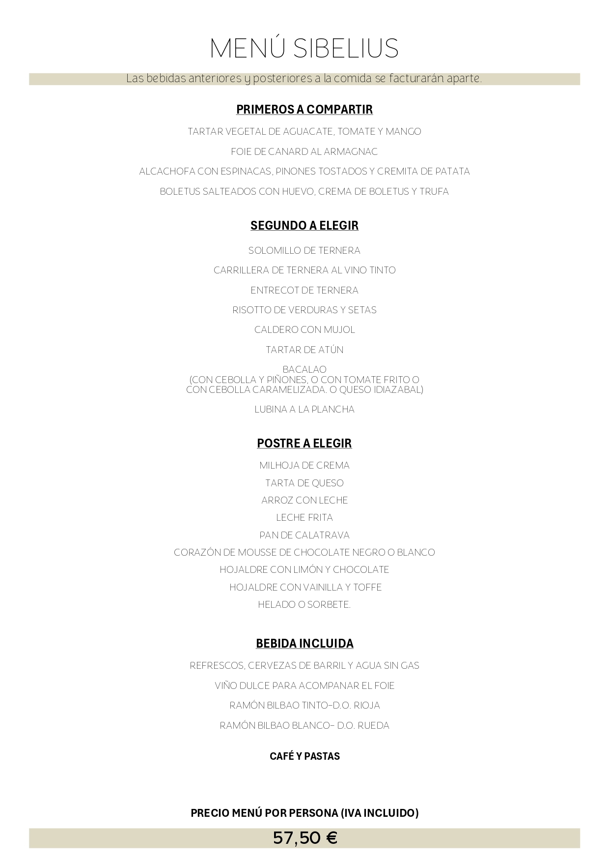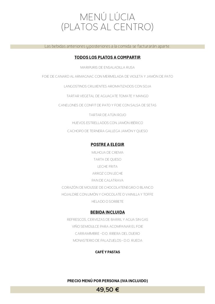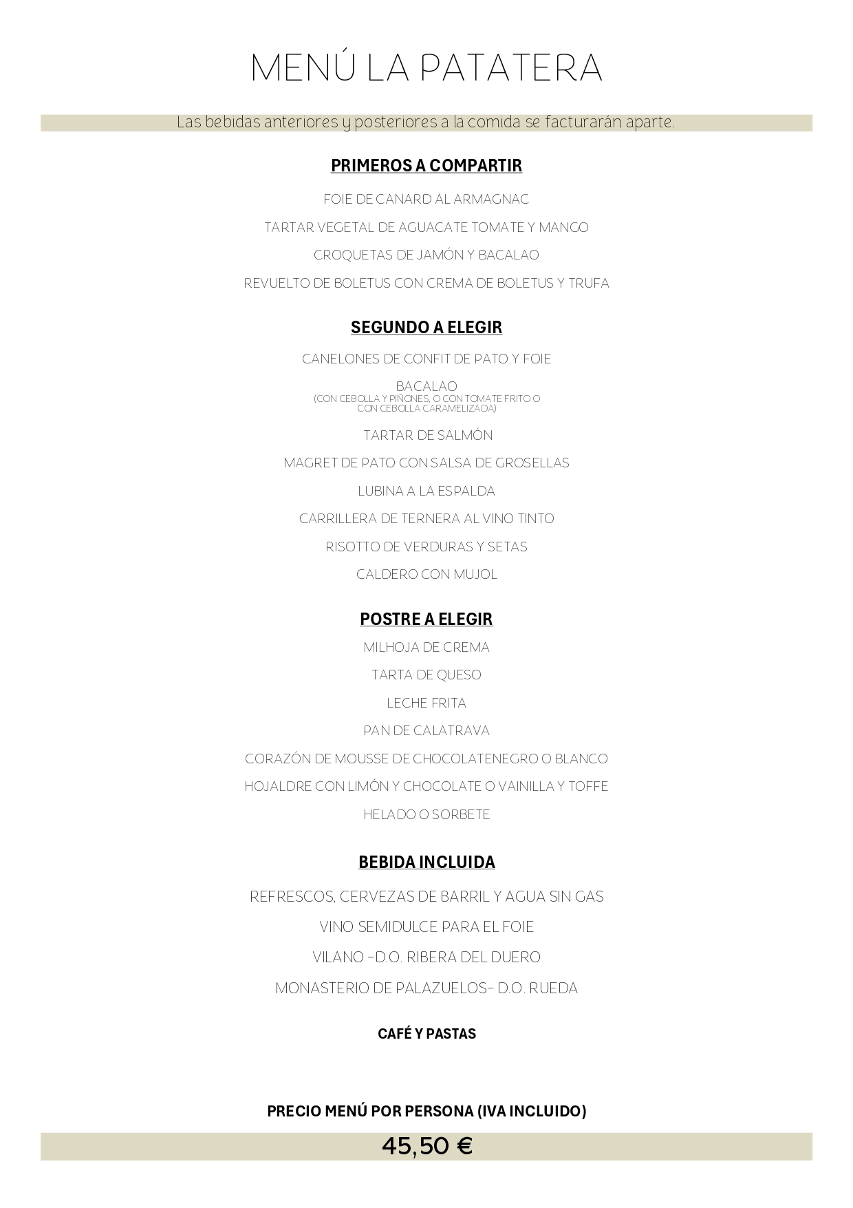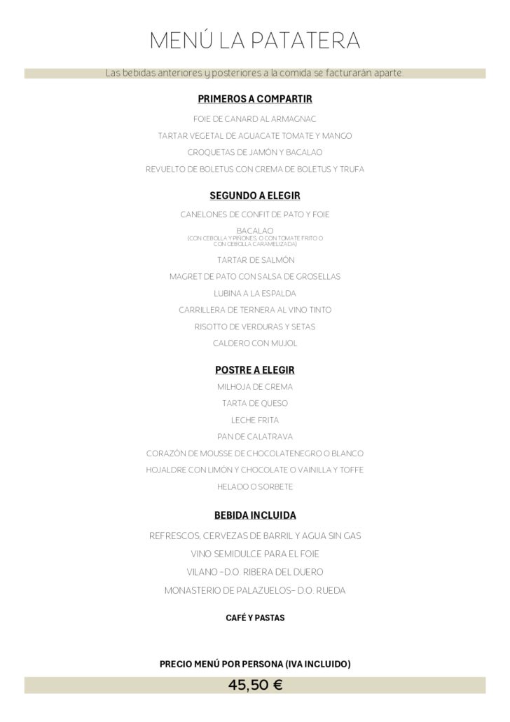 Menú PLAZA JOSÉ MARÍA ARTÉS 75,00€